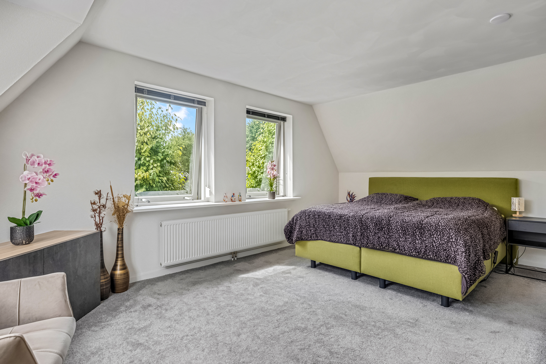 De trap in de hal brengt je naar de 1e verdieping. Hier zijn 2 slaapkamers, voorheen 3, en de badkamer. De co mfortabele badkamer uit 2021 is geheel betegeld en van alle gemakken voorzien. Zo vind je hier een douche met drain, wastafelmeubel met spiegel, zwevend toilet en design radiator. De master bedroom aan de voorkant is voorzien van een heerlijke airco, ruime inloopkast en dakkapel (2021). Eventueel is er de mogelijkheid voor een 3e slaapkamer, zoals het oorspronkelijk was. Aan de achterkant van de woning bevind zich de andere ruime slaapkamer met dakkapel. De gehele verdieping is wederom voorzien van stucwerk op muren en plafond en rolluiken. Totaal zijn er 3 dakkapellen.