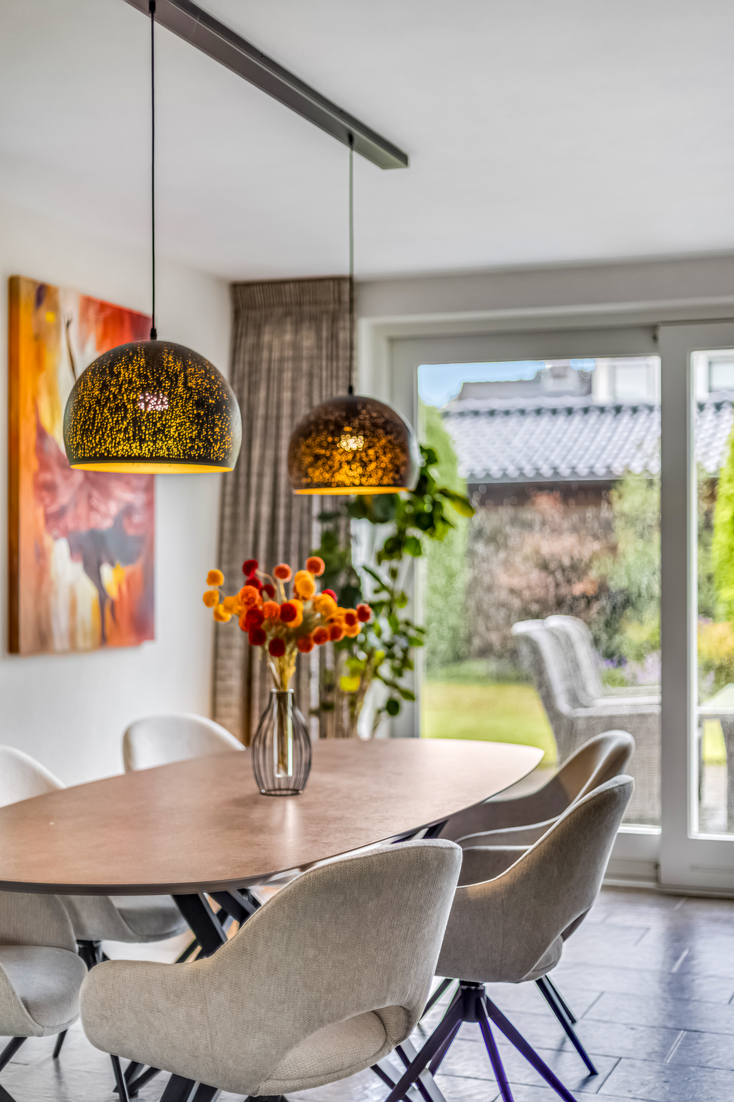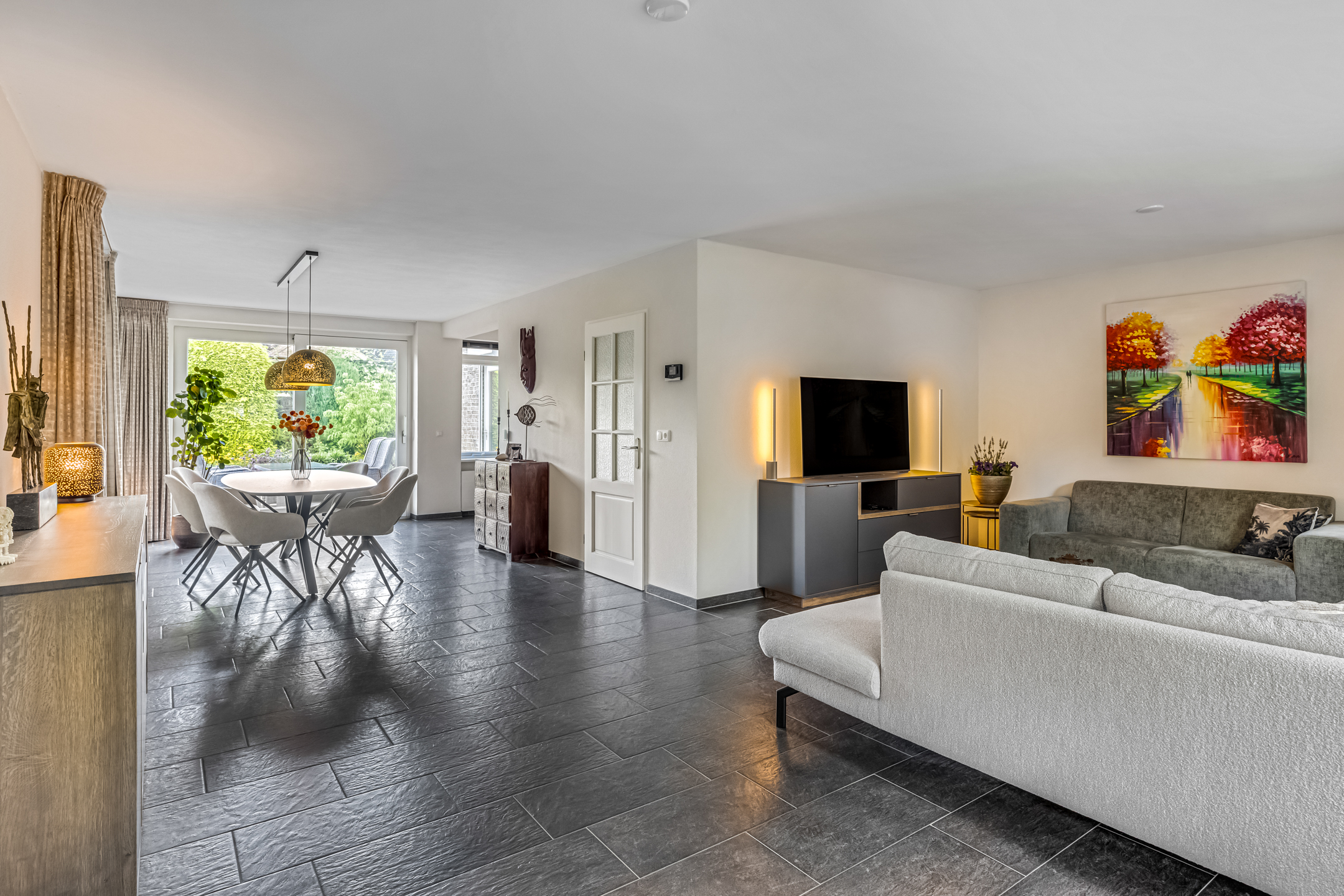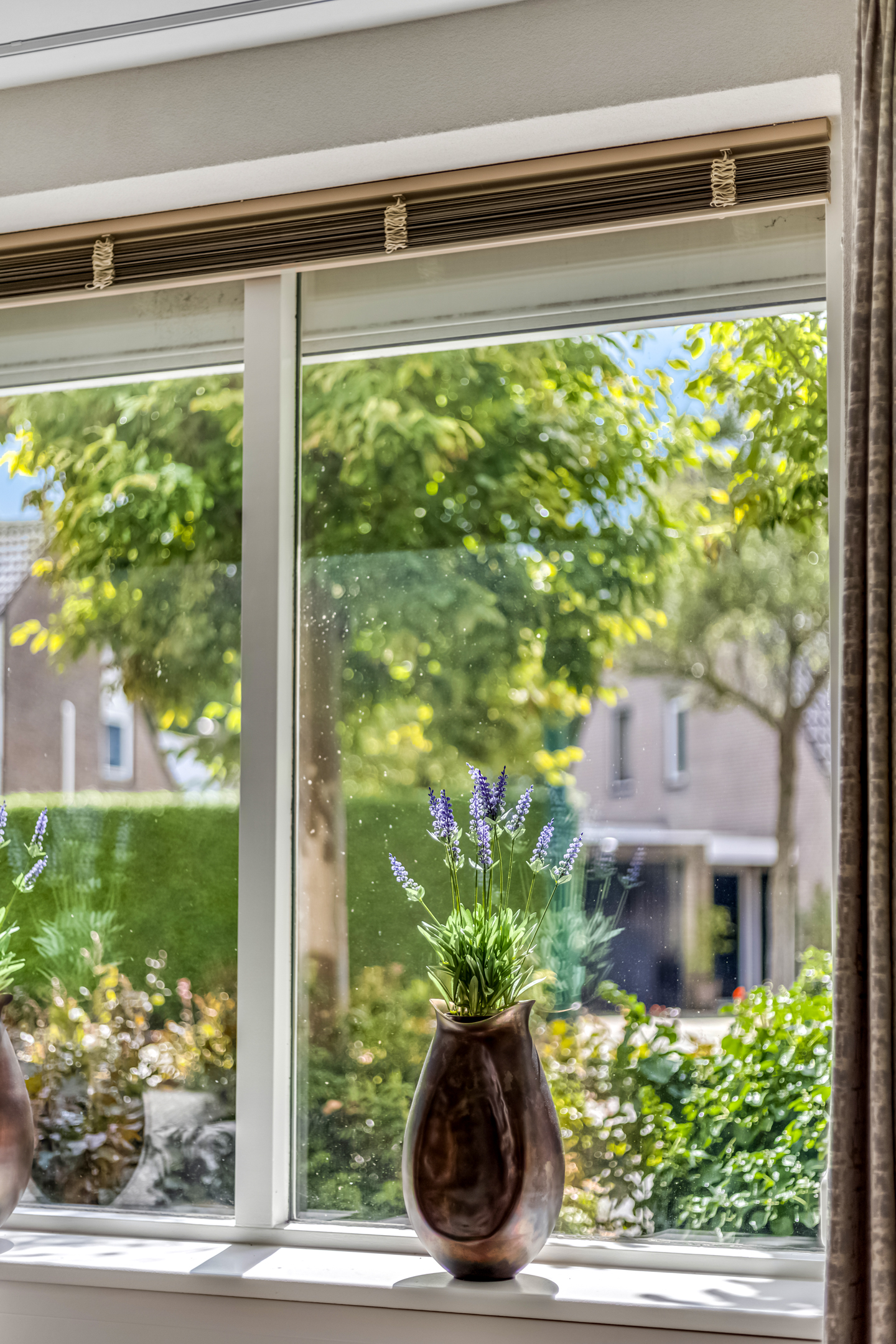 Een brede oprit aan de rechterzijde leid je naar de voordeur, ruime garage en tuin. Je komt de woning binnen in de hal. Hier vind je de trap naar de 1e verdieping, het toilet, meterkast en veel ruimte om jassen en tassen op te bergen. Vanuit de hal stap je zo de gezellige en ruime woonkamer in. Hier is plek voor een fijne zithoek. Daarnaast kun je hier met gemak een grote eettafel neerzetten, waar de hele familie aan kan zitten. Via de woonkamer loop je dankzij de schuifpui zo de tuin in. Vanuit de woonkamer kom je in de keuken. De vernieuwde moderne keuken is voorzien van een granieten blad, brede Bora inductiekookplaat met ingebouwde afzuiging, combi-magnetron, vaatwasser en een koel-vriezer van het merk AEG. Via de keuken heb je een doorloop naar de bijkeuken en de inpandige garage. In de bijkeuken tref je de aansluiting voor de wasmachine en de droger en de Vaillant CV-ketel uit 2021. De garage met vernieuwd dak is ruim en voorzien van een elektrische deur. Via de openslaande deur in de bijkeuken kun je naar achtertuin. Rondom de woning ligt een keurig aangelegde tuin. Er is veel groen, maar er zijn ook meerdere terrassen, zodat je hier op veel plekken kan genieten van deze fijne tuin en de zon. Achter in de tuin staat een tuinhuisje waar je alle tuinspullen in kan opbergen. Gehele begane grond van de woning is voorzien van rolluiken en stucwerk op muren en plafond.