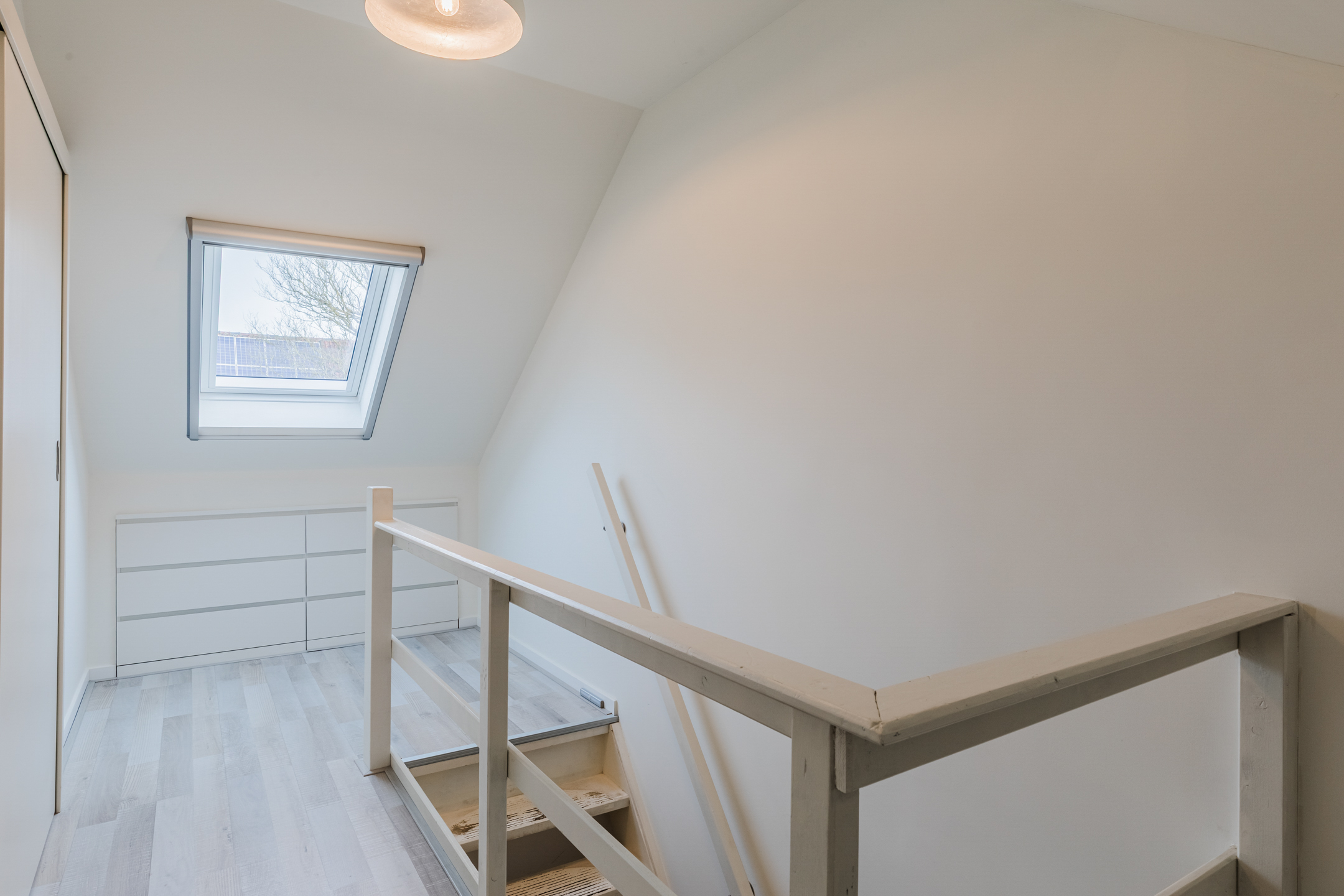 Via de vaste trap is de voorzolder en de derde slaapkamer te bereiken. Zowel de voorzolder als de slaapkamer zijn voorzien van praktische knieschotten en lades voor extra bergruimte. De slaapkamer beschikt over een ruime dakkapel en veluxraam, waardoor ook deze ruimte geniet van veel lichtinval. De zolder is kort geleden verbouwd en prachtig afgewerkt. De muren en plafonds zijn vanzelfsprekend voorzien van strak stucwerk.