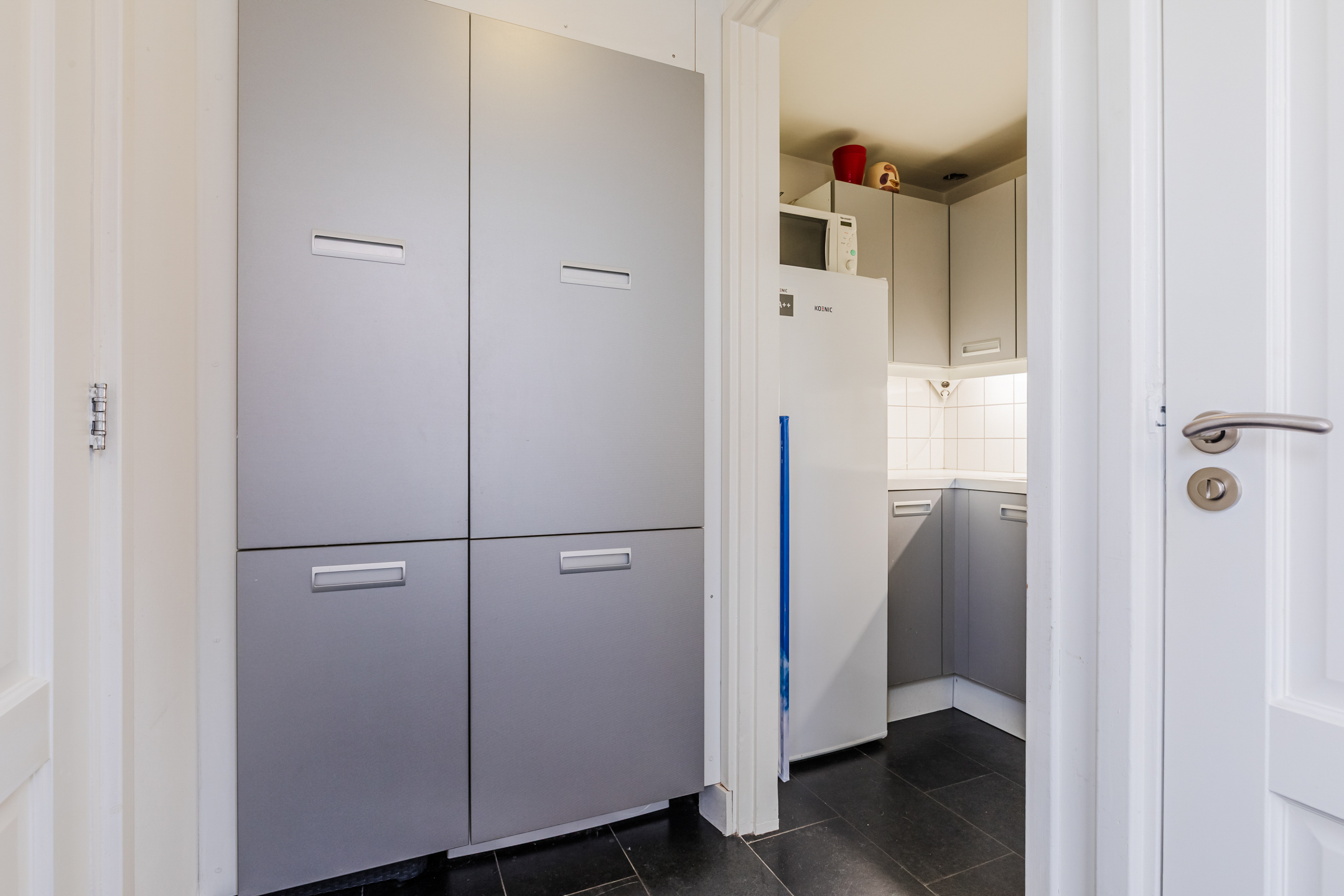 Keuken: Aan de achterzijde van de woning bevindt zich de mooie keuken in parallel opstelling, voorzien van granieten werkblad , koelkast, oven, vaatwasser, afzuigunit en 5 pits gaskookplaat met wokbrander. Achter de keuken is de toegang naar de bijkeuken, ingebouwde Cv ketel en aansluiting wasmachine en droger, toilet en de achterdeur. De tuin is ook bereikbaar via de openslaande tuindeuren.