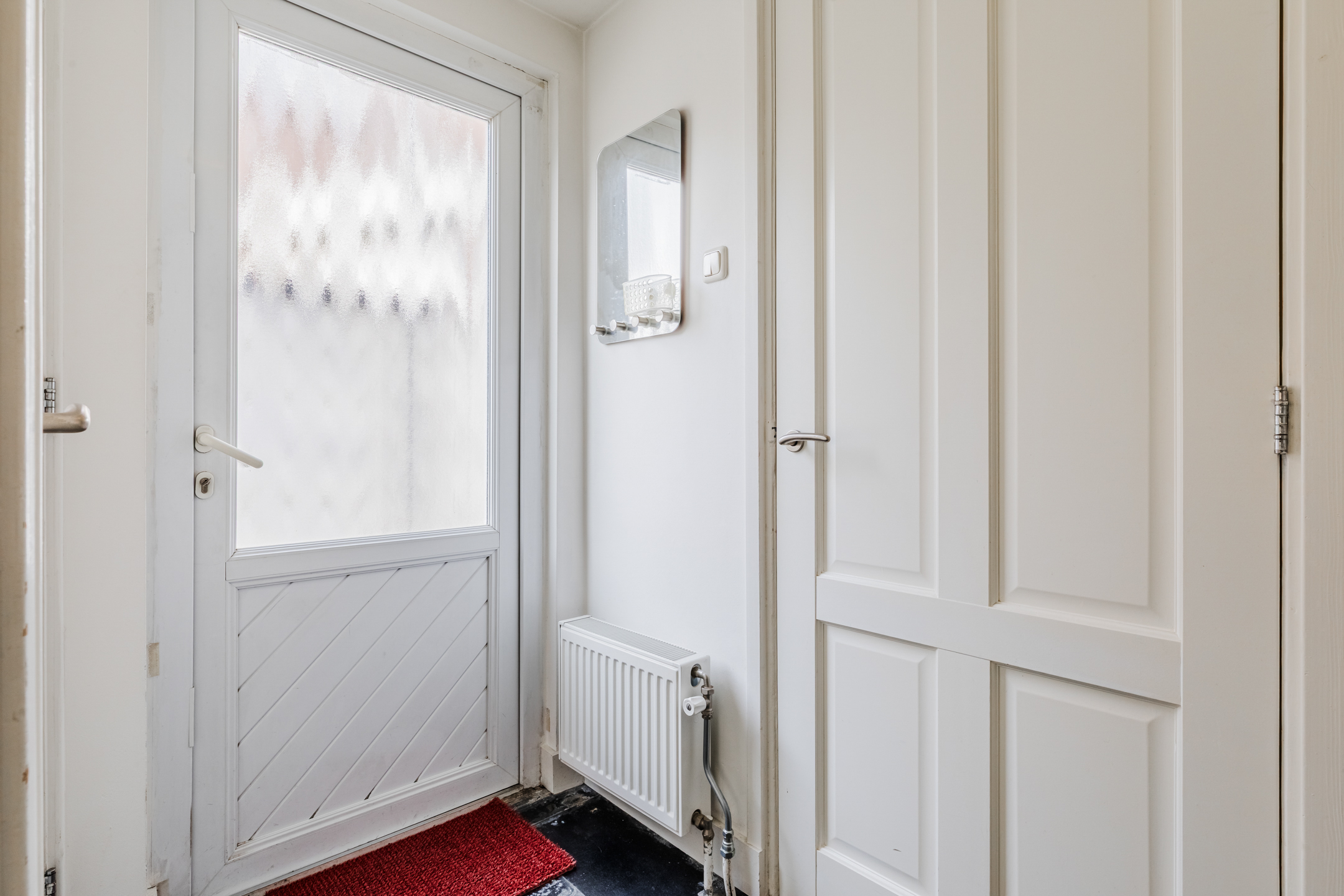 Entree: Via de authentieke voordeur komt u in de lichte hal met trapopgang en heb je toegang tot de woonkamer, de keuken, bijkeuken en toilet.