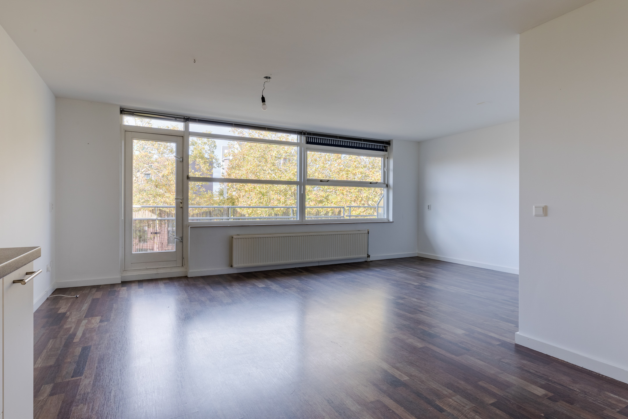 Via de hal bereik je de aangenaam ruime en lichte woonkamer van het appartement.